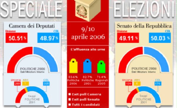 義大利選舉結果兩派選票空前接近, 國外媒體語出口民調預測兩次反覆. 目前結果還不清楚. 總之兩院勝差都不超過1%