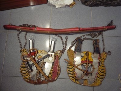 刑具爺又稱「什役」、「雜役」,有些將團甚至不開臉扛著扁擔就上場,但不要看到名子內有個「雜」字又不開臉就覺得人家是雜魚,我告訴你,刑具爺很重要!沒有祂,八家將哪裡都去不了!