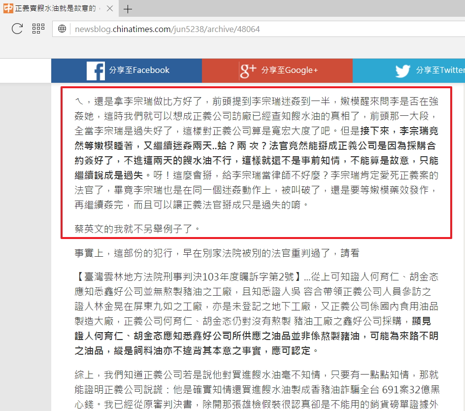 jun5238於http://newsblog.chinatimes.com/jun5238/archive/48064以李宗瑞迷姦犯罪談蔡英文,如下: