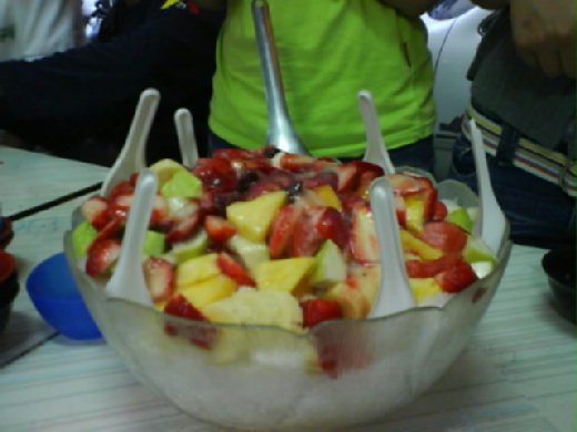 經過一段時間,也不知多久啦!反正拔拔已經切了半個木瓜了,麻迷才從樓上下來。