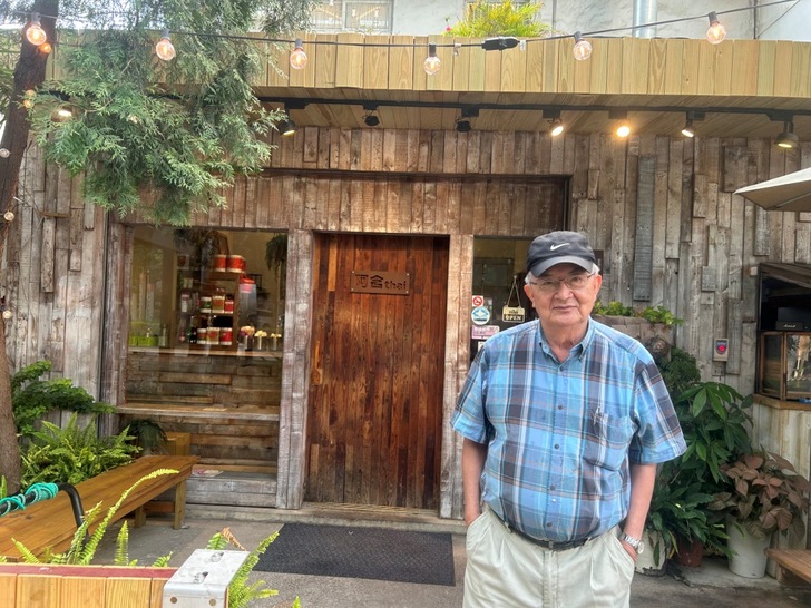 James 在阿含餐廳前