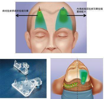 4.手術期短 「內視鏡五爪拉皮」手術通常用於上半臉的拉皮手術,可改善額頭的皺紋,魚尾紋及下垂的眉毛, 雙眉恢復至年輕時眉骨上方的正常位置,眼皮鬆弛導致內雙的雙眼皮,也會回到年輕時的雙眼皮。