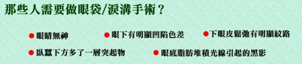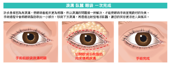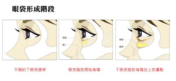 眼袋形成的原因主要是因為眼眶內脂肪過度肥厚或是筋膜鬆弛而導致脂肪膨出,以年紀較大者居多,眼袋的形成是因為皮膚、 肌肉和結締組織因為老化而鬆弛,以致無法阻止眼窩脂肪突出。 淚溝是因為眼眶下緣皮下脂肪位移或是伴隨著萎縮所致,而許多患者因為有淚溝,讓眼袋看起來更為明顯,所以淚溝的問題須 要一併解決,才能使眼袋手術呈現最好的效果。