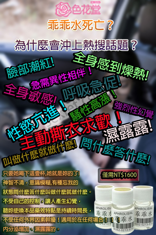 這個新聞讓大家對乖乖水再次有充分的認識,乖乖水是強效催情藥,產生強烈的性幻覺,問什麼答什麼,叫做什麼就做什麼。1-3滴就會讓女性無法控制自己的需要做愛,如果沒有男性則會自慰或者對著桌子角碰撞下體以緩解陰道附件的瘙癢和空虛。當然最後還是需要男性的陰莖驚人陰道並且射精到陰道內才能接觸藥效。精子會產生效果讓乖乖水藥效減退,不然女性無論怎麼自慰都無法降低乖乖水的催情效果。