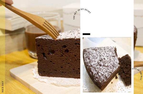 從側面看又更吸引人,看著照片我又要在流口水了。它是用70.5%的比利時巧克力,吃起來不會讓人覺得很苦,反而有種甘醇的滋味,是一款老少咸宜的蛋糕。
