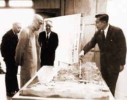 孫運璿(右)推動電力建設,帶動經濟發展,獲蔣中正(左二)及蔣經國(左一)父子重用。